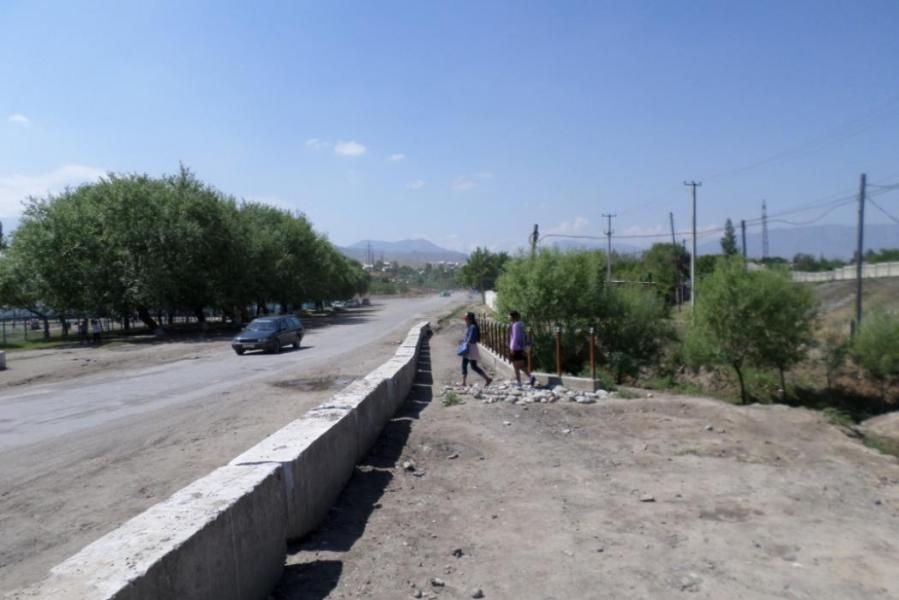 На подходе к школе №6 города Кызыл-Кия устанавливается мост и оборудуется тротуар (фото)
