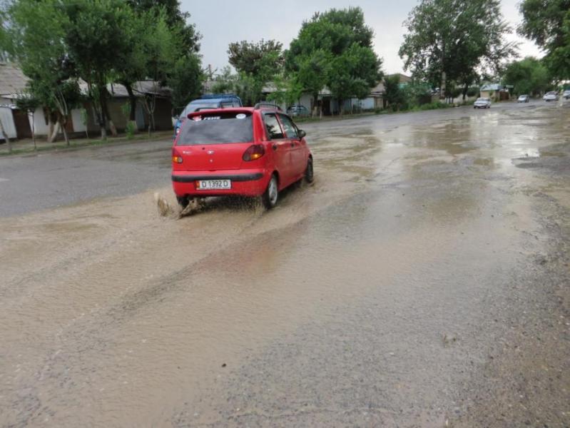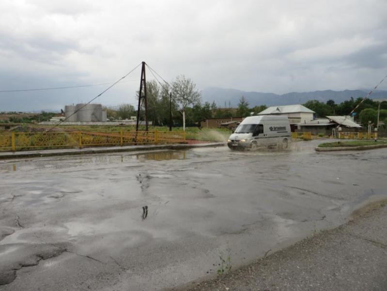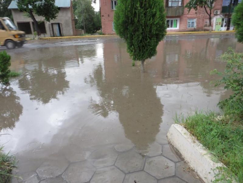 Фото — В городе Кызыл-Кия затопило улицы после 5-часового ливня, града и ветра